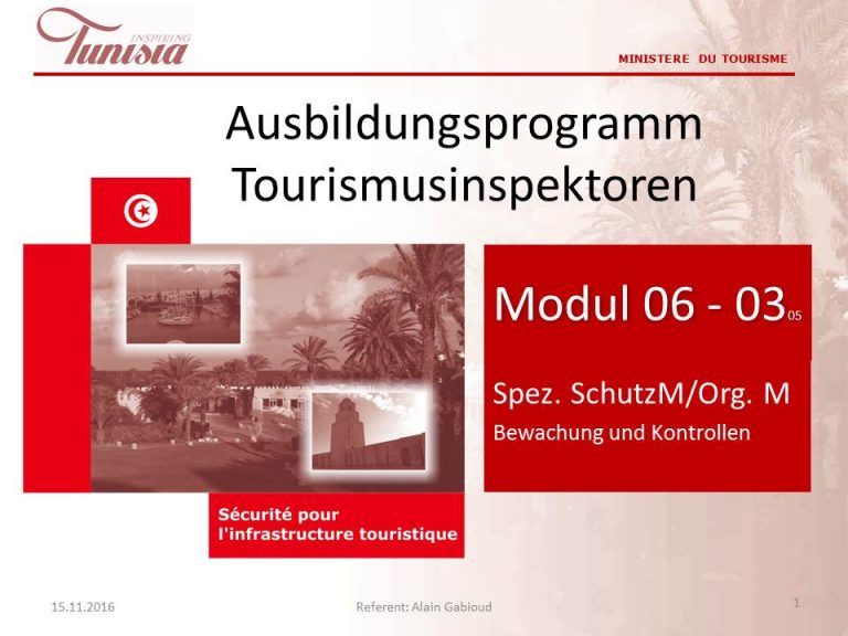 Gerhard Link Sicherheitsberatung wurde beauftragt, für das tunesische Tourismusministerium ein entsprechendes Schulungskonzept zu erarbeiten und Schulungen auszuführen.